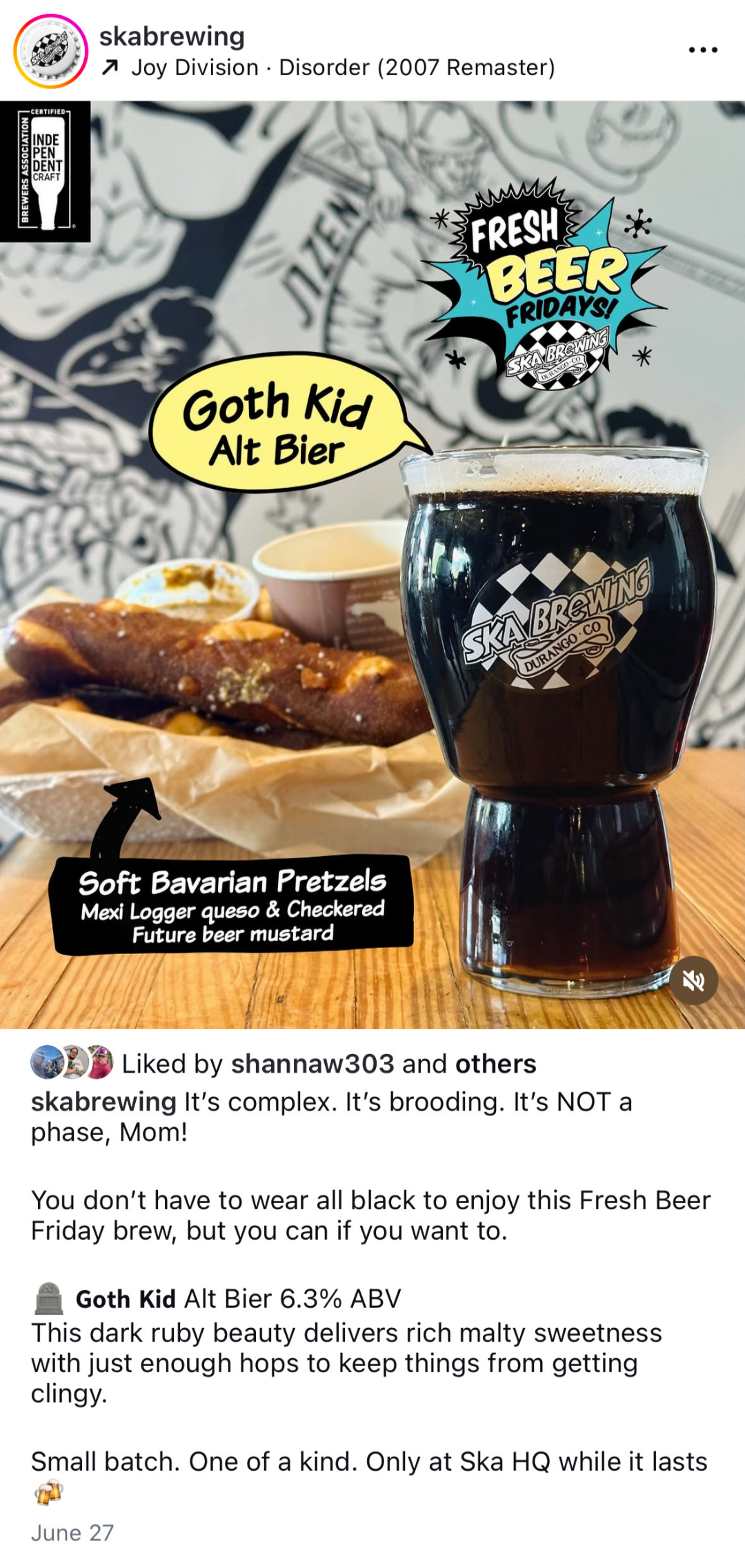 I created content that felt fresh every week, putting eyes on the tasting room and beer garden while enticing followers to visit Ska HQ for exclusive tastings, community, views, merch and food.